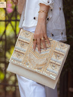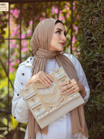 Size 25cm X 30 cm and includes a cross body chain belt.