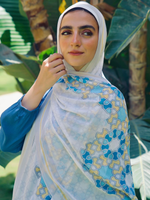 Add a touch of artistic elegance to your wardrobe with the Andalusia Scarf. This beautiful scarf features an intricate geometric pattern inspired by traditional Andalusian designs, rendered in soothing shades of blue, yellow, and white. Its high-quality chiffon fabric ensures a lightweight and graceful drape, making it a versatile accessory for any outfit.