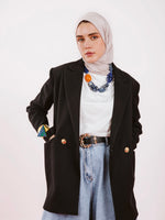 100% wool, oversized look.
