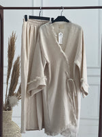 Elevate your casual wardrobe with our stylish Linen Cardigan and Pants Set. Crafted from soft, breathable linen, this ensemble offers ultimate comfort while keeping you effortlessly chic. The versatile cardigan can be layered over any outfit, while the tailored pants provide a relaxed yet polished look. Perfect for any occasion, this set is a must-have for the modern woman who values both style and comfort.