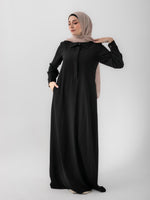 The Basic Abaya with Pockets is a practical and simple everyday abaya made from light crepe. Suitable for all seasons and Umrah, it features convenient pockets and is designed for all body shapes.