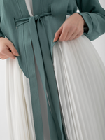 The Open Pleated Abaya is a stunning blend of elegance and modesty, perfect for various occasions. This abaya features a beautiful pleated design that adds a touch of sophistication to your look, while the open front and tie waist ensure a flattering and customizable fit. Crafted from high-quality fabric, it provides both comfort and style.