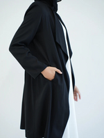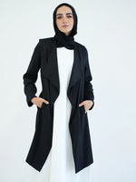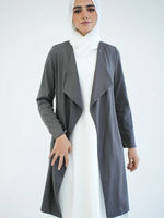 It’s sometimes the simplicity and minimalism that add beauty to a piece. Buttonless cut and side slit pockets make an easy to put on and off jacket. Just slip this elegant gabardine jacket over yourself for utter beauty.