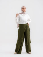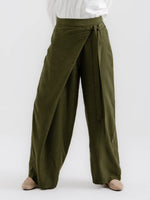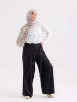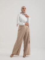 The Linen Wrap Pants are a versatile and stylish addition to your spring and summer wardrobe. These modest, wide-leg pants are crafted from non-transparent linen, providing both comfort and elegance. The wrap design adds a unique touch, making them suitable for various occasions.