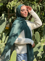 The Universe Scarf is a vibrant and colorful accessory made from high-quality chiffon. This scarf features an elegant pattern in a blend of white and teal/green, adding a touch of sophistication to any outfit.