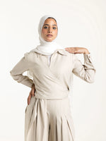 Linen Wrap Blouse is a versatile and stylish layering piece that adds a touch of elegance to any outfit. Made from high-quality linen, this blouse features a wrap design that allows for a customizable fit and effortless style. Perfect for both casual and formal occasions, it provides a sophisticated look while maintaining comfort and breathability.
