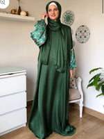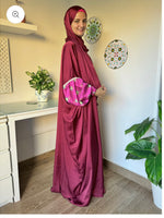 this portable prayer kit includes a one piece satin isdal, prayer mat and a small cross bag to keep everything together!